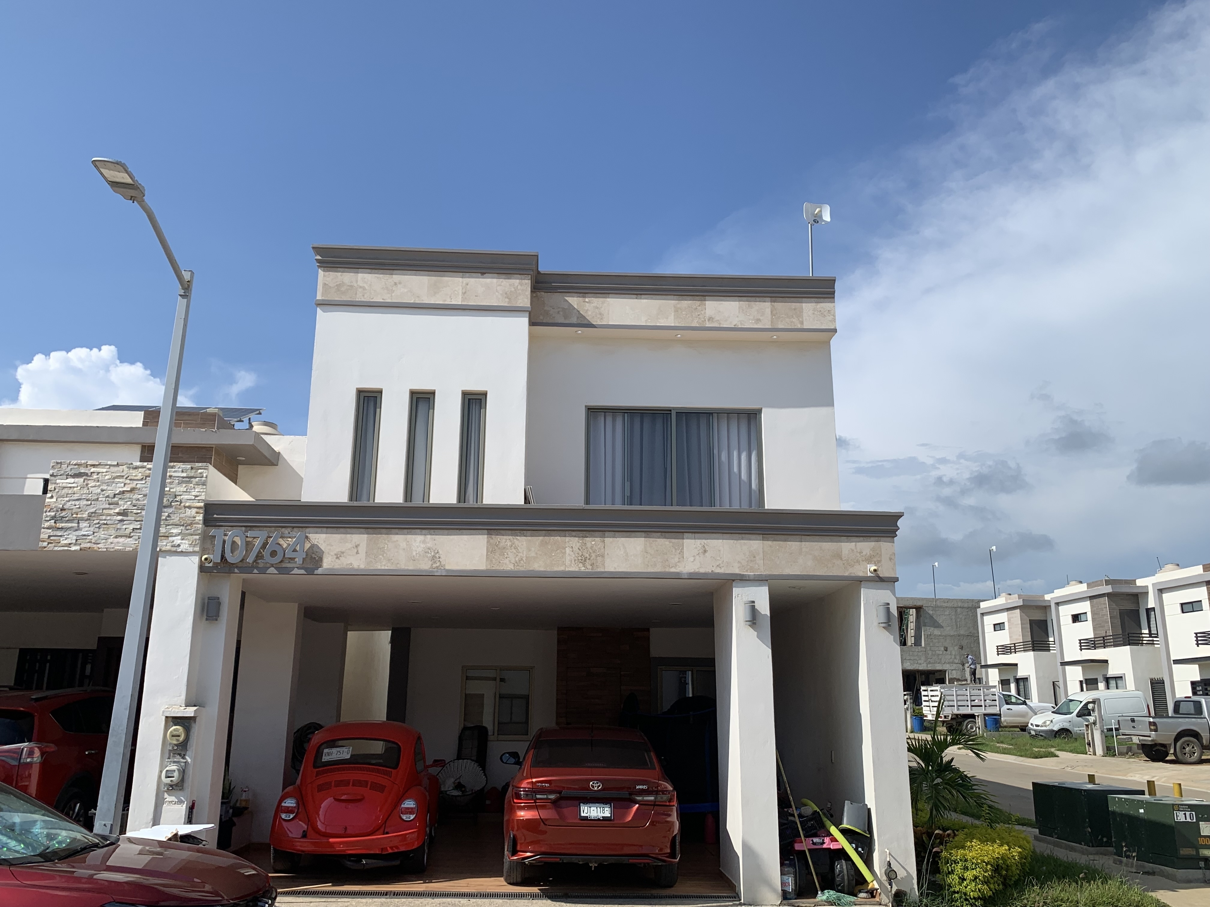 SE VENDE BONITA CASA EN ESQUINA DE DOS NIVELES, COCHERA TECHADA PARA DOS AUTOS, CISTERNA DE 5000 LITROS, PASILLO LATERAL PARA PATIO Y ÁREA DE LAVADO, JARDÍN!