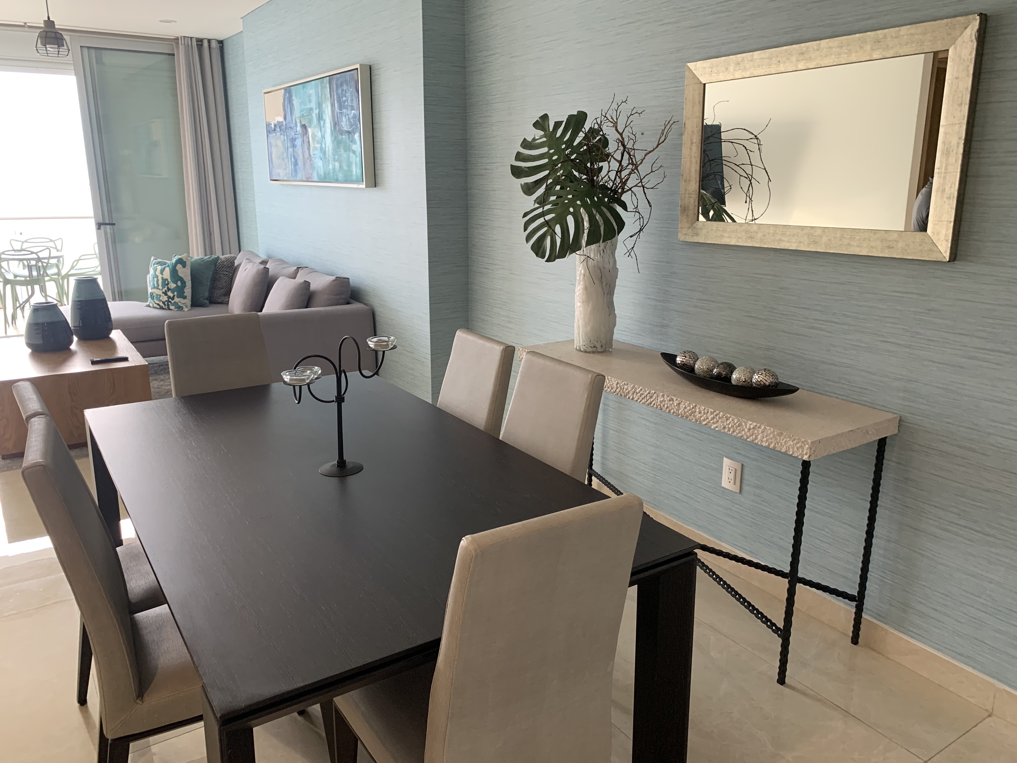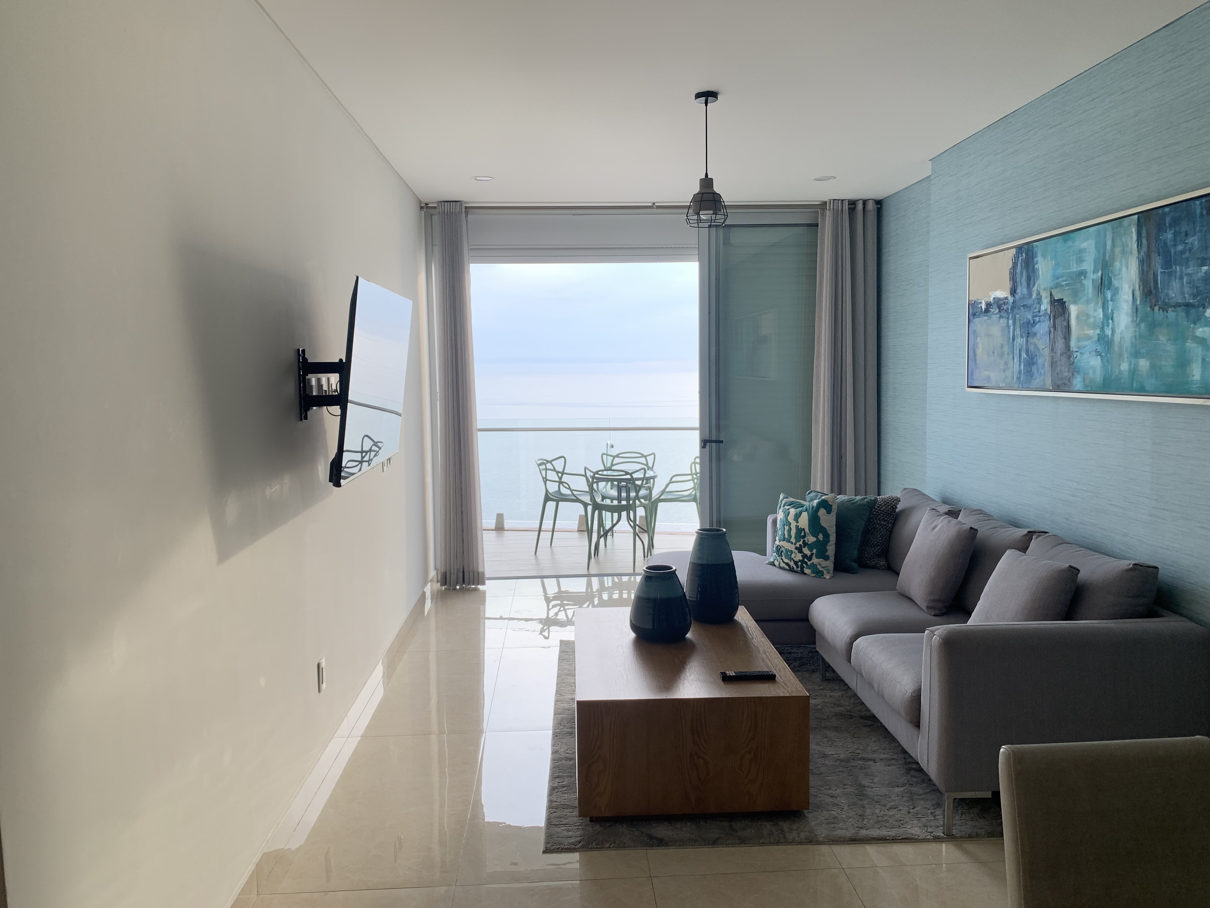 Sala y comedor amplios, con acceso a balcón y vista directa al mar