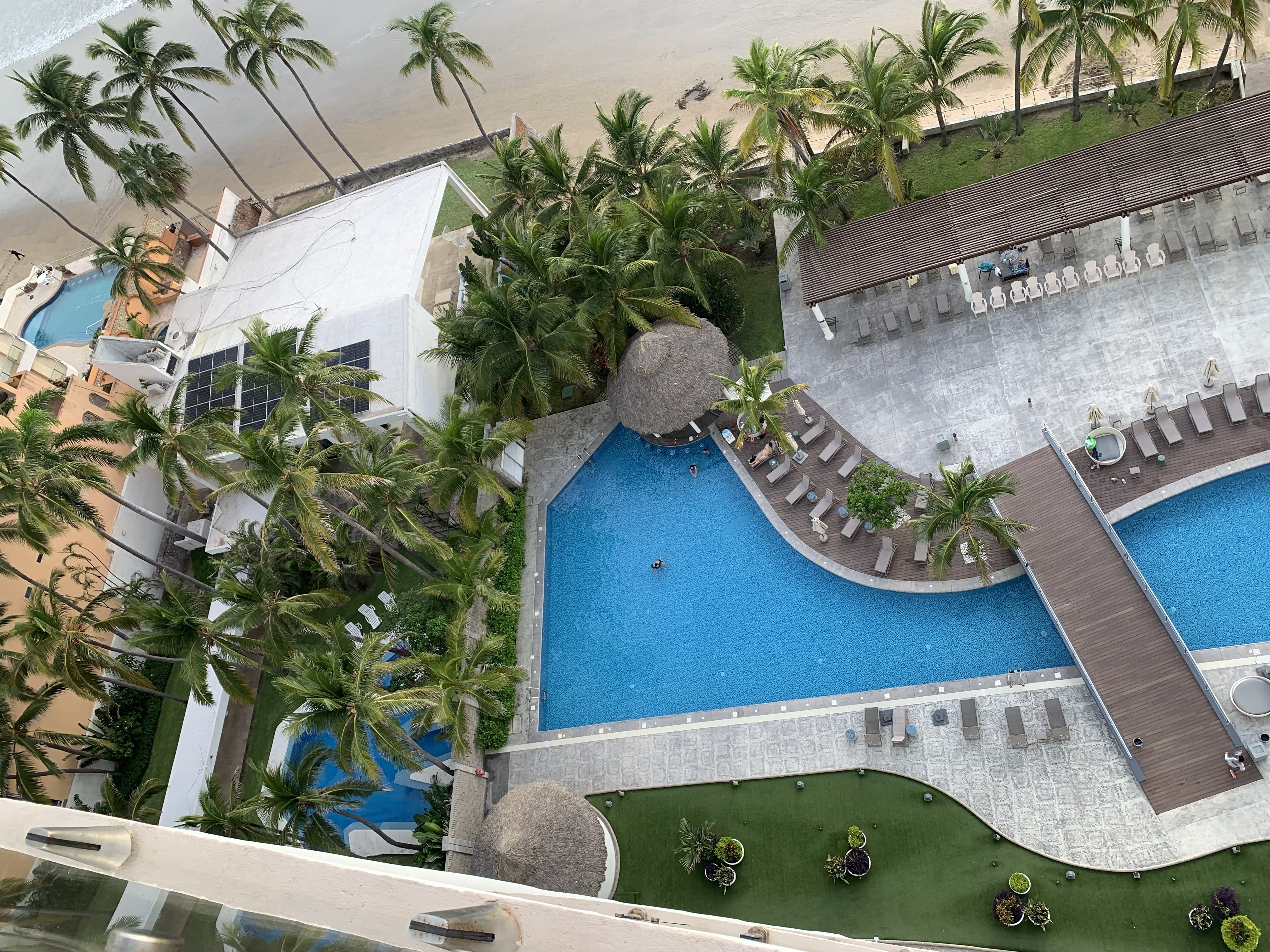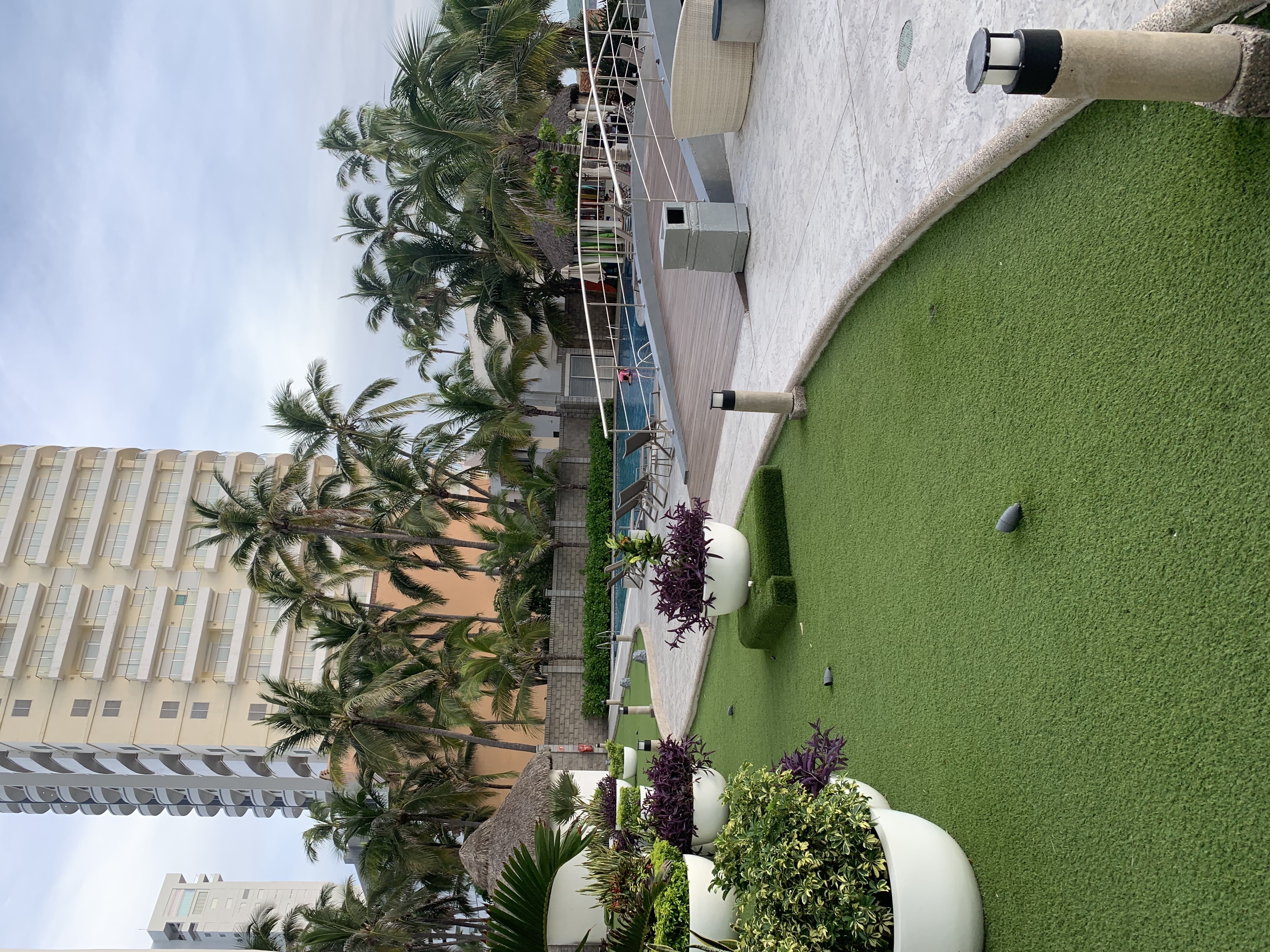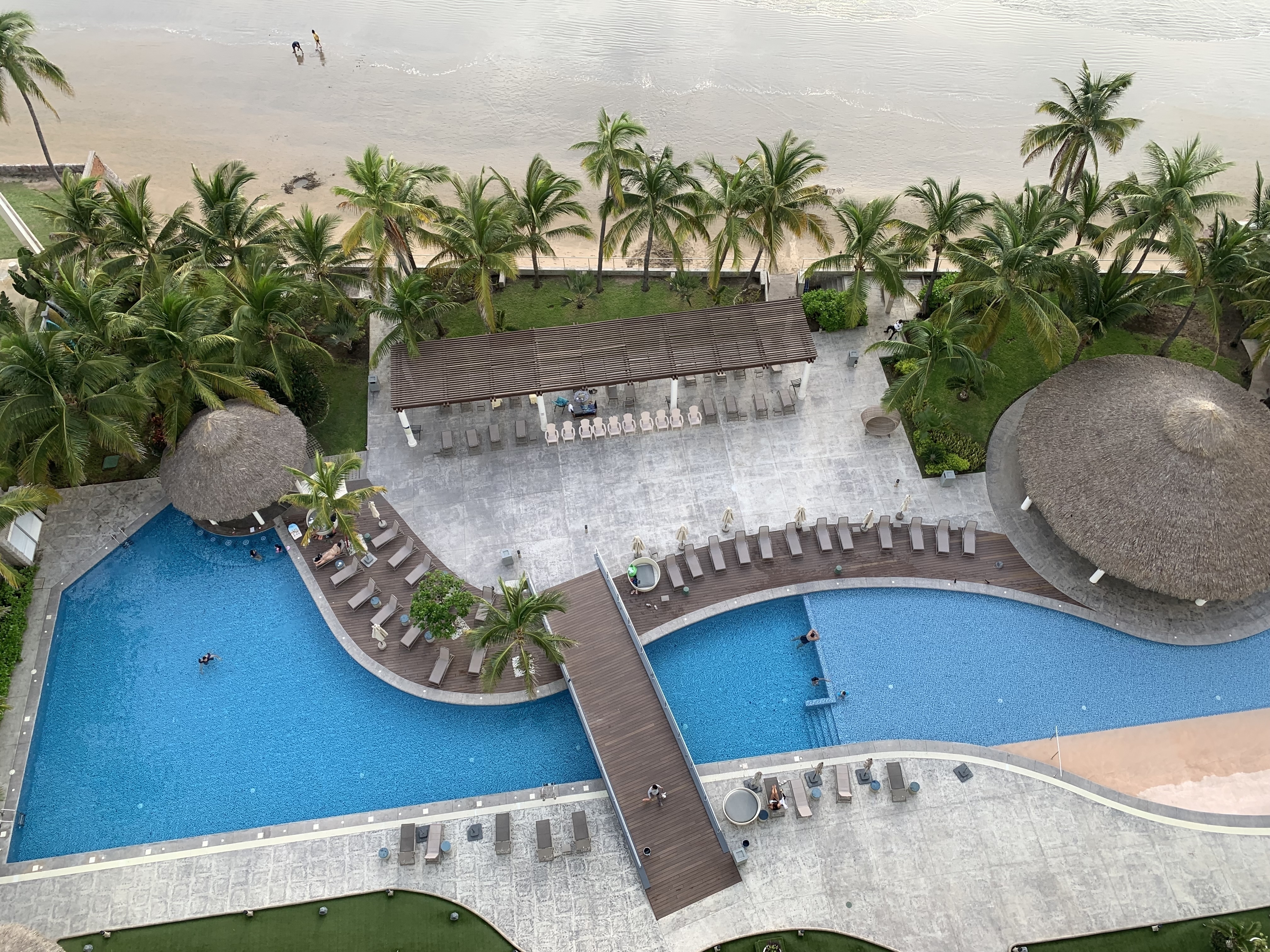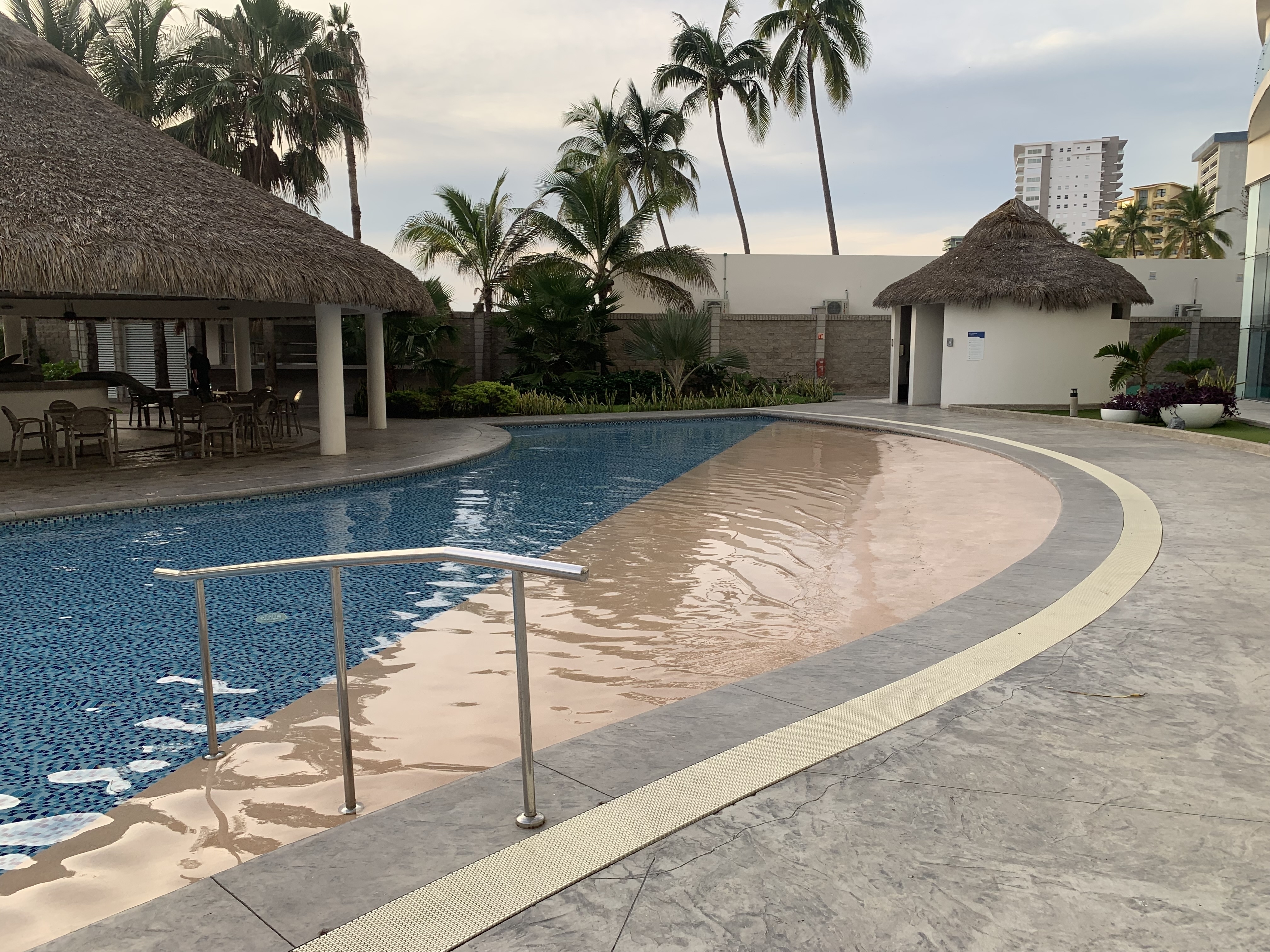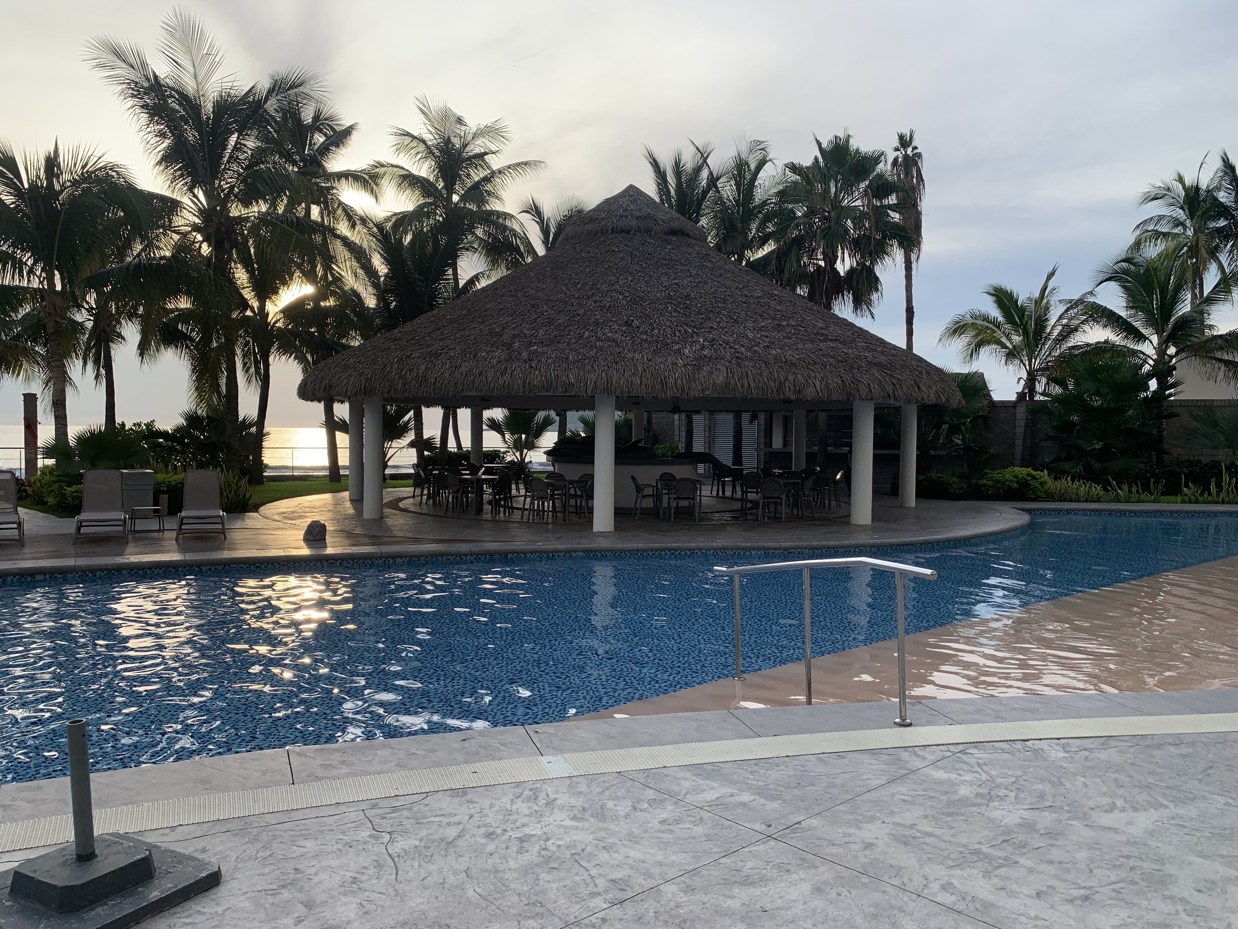 Alberca frente al mar con palapas