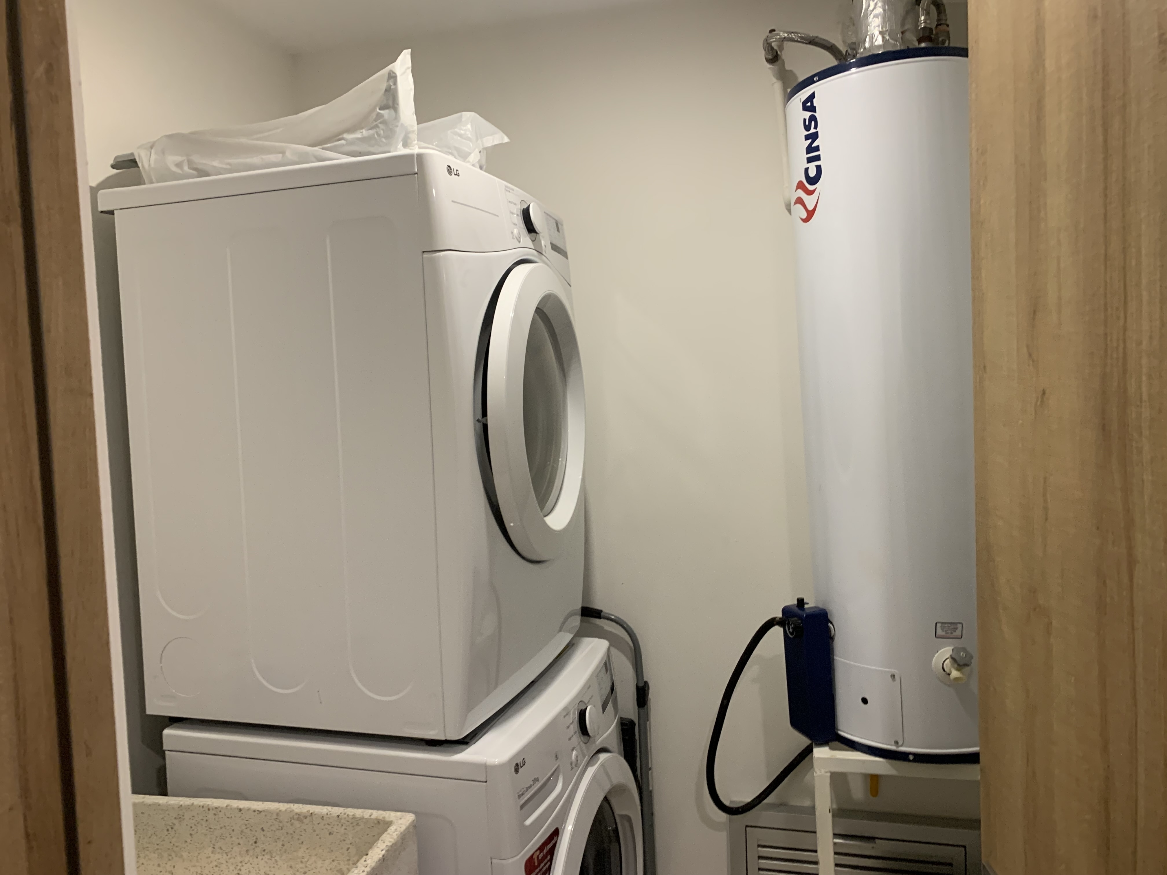 Área de lavado con lavadora, secadora y boiler